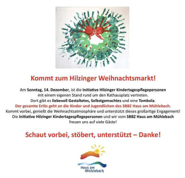 Hilzinger Weihnachtsmarkt am 14.12.25 Unser Stand & Tombola. Der gesamte Erlös geht an das Haus am Mühlebach